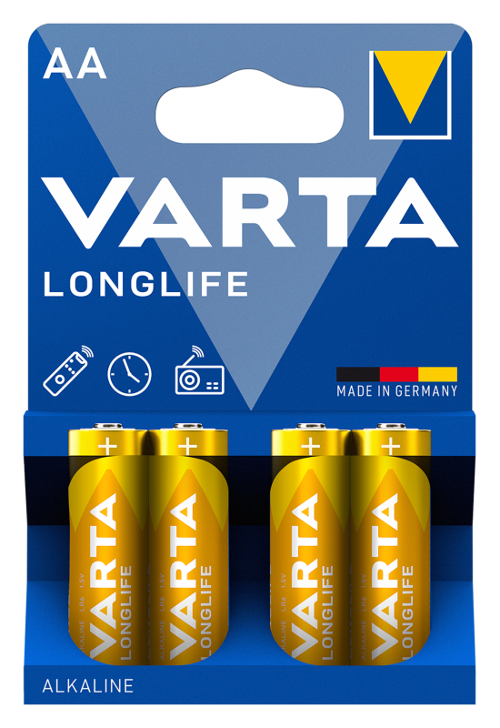 langanhaltende Energie für Geräte mit konstantem und niedrigem Energieverbrauch wie Fernbedienungen, Wanduhren, Radios usw., klare Anwendungsempfehlungen durch leicht verständliche Symbole auf der Verpackung, "Made in Germany" als Herkunftsnachweis und Qualitätsmerkmal auf den Verpackungen, VARTA garantiert eine verlängerte Lagerfähigkeit von 10 Jahren