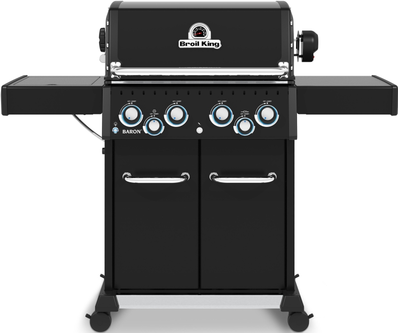 Der Baron™ 490 Shadow verfügt über massive Gussroste, dem Flav-R-Wave Verdampfersystem, 4 Edelstahl Dual-Tube™ Brenner, sowie klappbare Edelstahl Seitenablagen und einem geschlossenen Unterwagen.