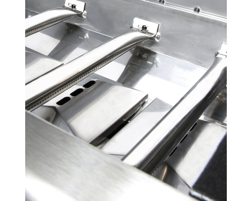Der Royal Shadow™ 320 verfügt über zwei matt-emaillierte Gussroste, dem Flav-R-Wave Verdampfersystem, 3 Edelstahl Stabbrenner, sowie klappbare schwarz lackierte Seitenablagen und einen Unterwagen mit schwarzer Tür. Das Gehäuse besteht komplett aus Aluminiumdruckguss, was für eine exellente Hitzespeicherung sorgt.