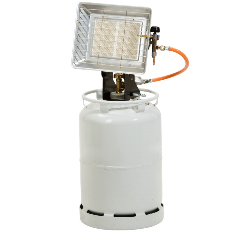 Der Strahler wird mit einer sicheren Halterung auf die Gasflasche montiert.