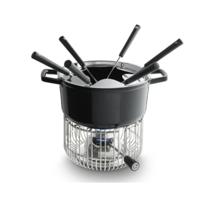 Dieses Set verbindet Genuss mit Schweizer Gemütlichkeit und enthält alles, was es für einen ausgiebigen Fondue-Plausch braucht: Ein Fonduetopf aus Gusseisen inklusive Deckel, Spritzschutz, Rechaud, Sicherheitsgasbrenner und 6 x 2in1 Fonduegabeln.