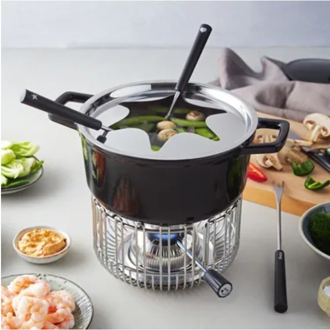 Besonders praktisch: Sie können den Gusseisentopf samt Deckel auf allen Herdarten und im Backofen verwenden und ihn auch zum Schmoren, Braten und Kochen nutzen. Ein weiteres Multitalent sind die Fonduegabeln, die dank ihres durchdachten Designs Brot, Fleisch und Gemüse sicher und fest aufspiessen, ohne dass sie im Topf zurückbleiben.